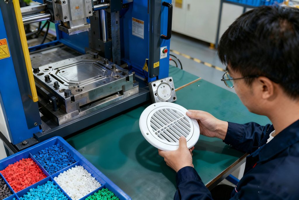 - Injection Molding Production: Once the mold is ready, plastic pellets are melted and injected into the mold under high pressure. The mold is then cooled, and the finished air vent is removed.