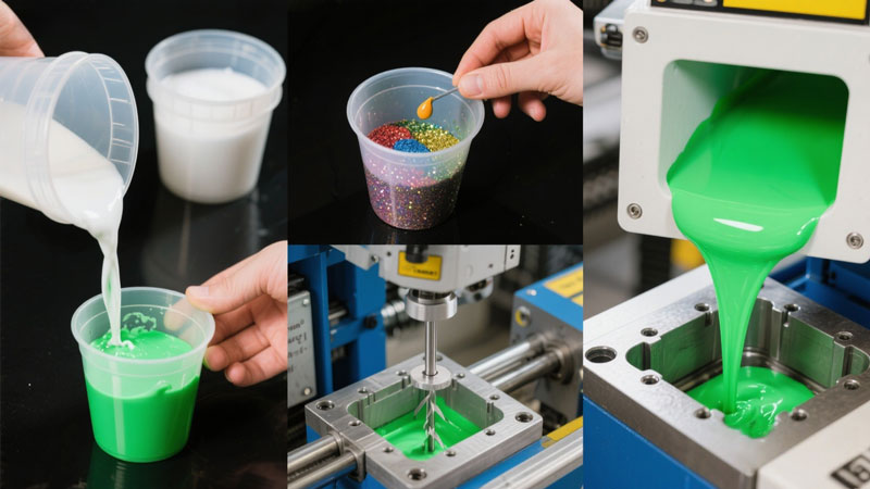 • Hardness Adjustment: Industry practice indicates that most lure producers keep different hardness grades on hand. A softer formula (like 10-15 Shore A) is perfect for subtle paddle tails or swimming appendages, while a harder one (20-25 Shore A) is better for creature baits or craws that need to hold their shape. You can blend them to hit the exact “chew” you want.