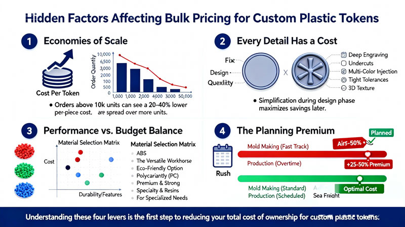 When you ask “how much do custom challenge coins cost?” or look for custom plastic coins no minimum orders, the initial quote is just the tip of the iceberg. True cost optimization starts with understanding what drives the price. From our experience, the main levers are: